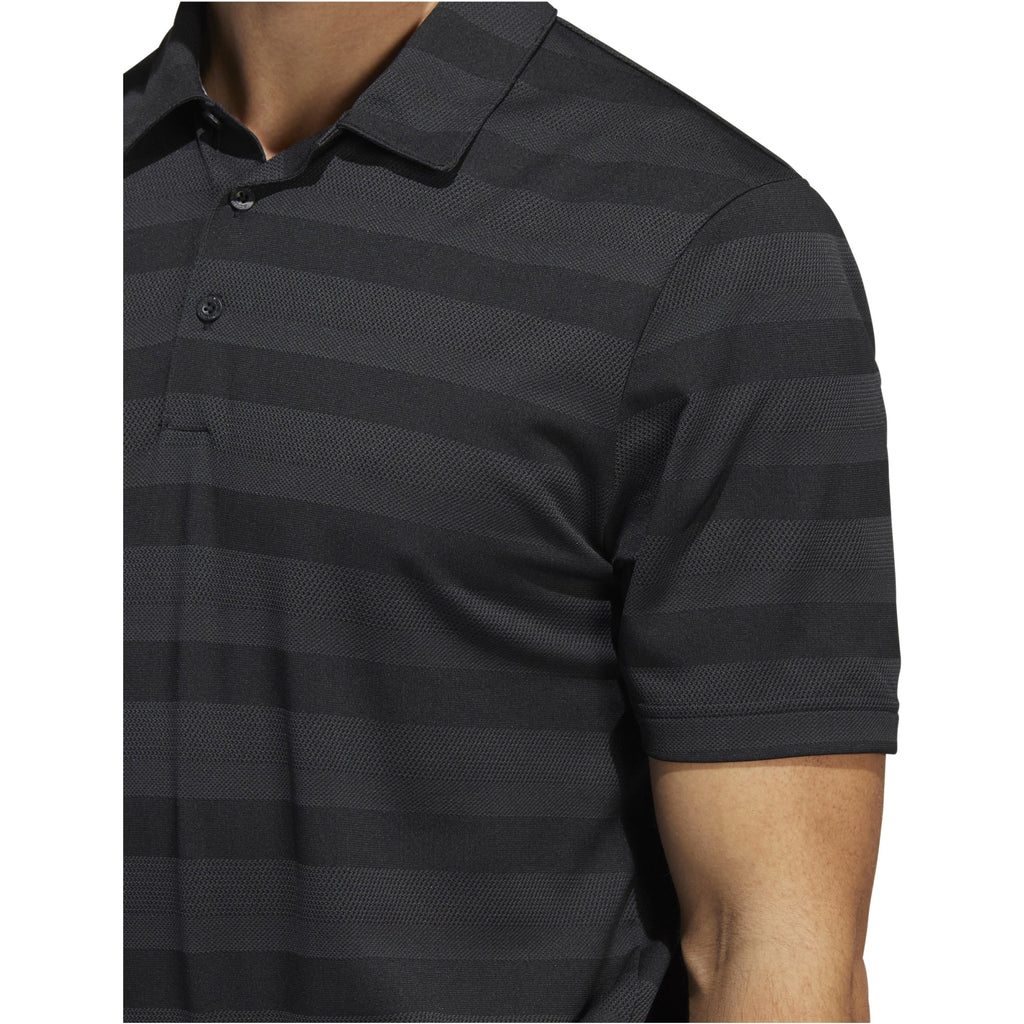 - Three-button ribbed polo collar
