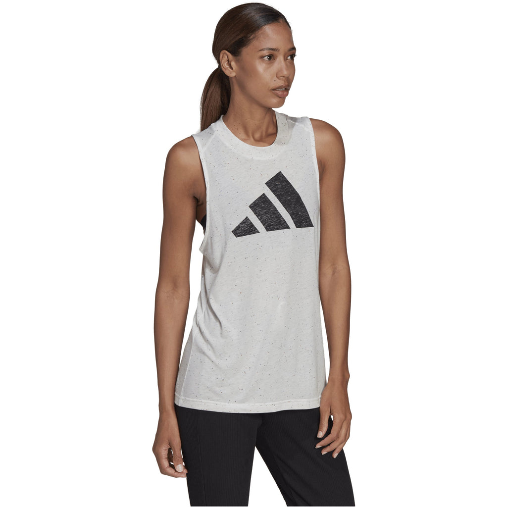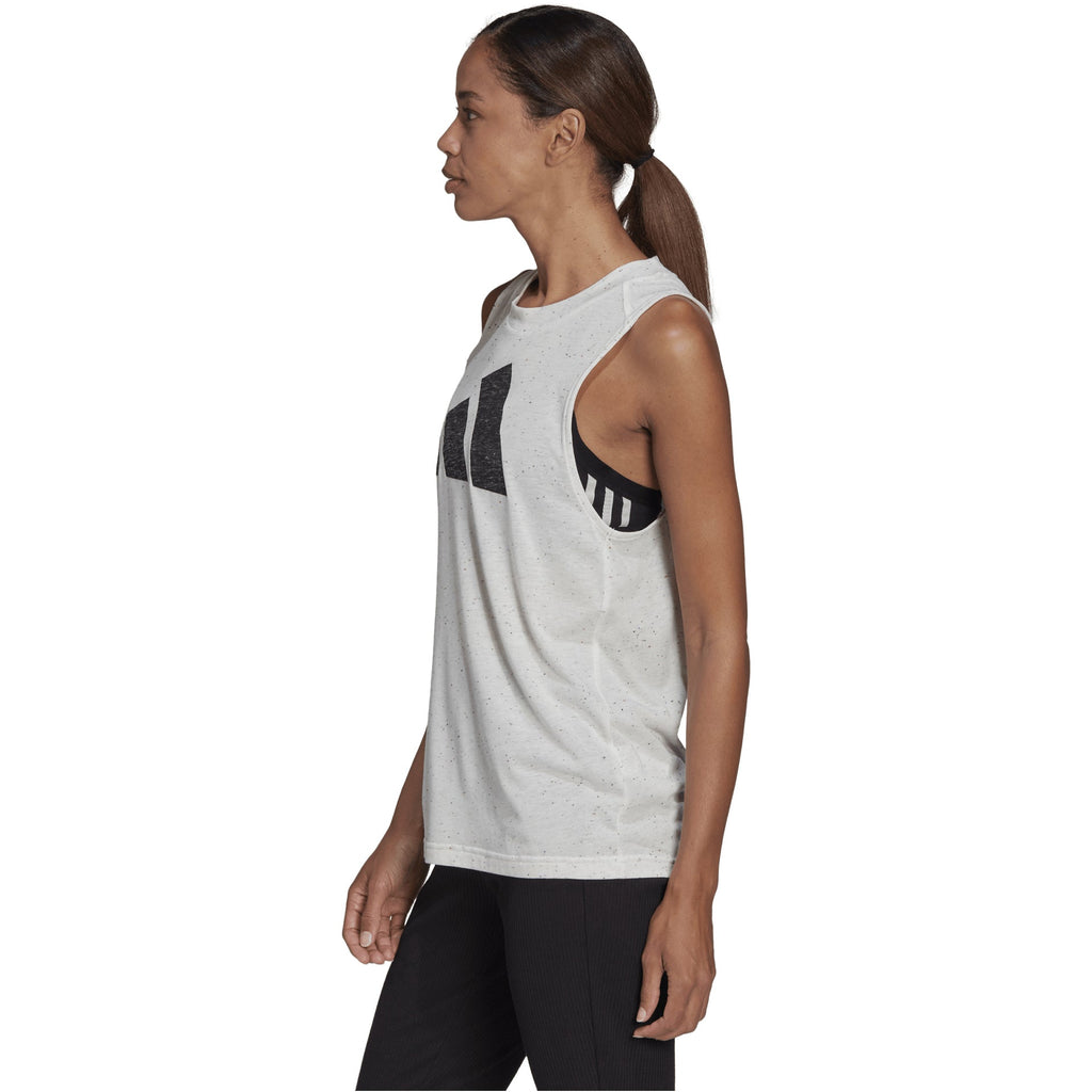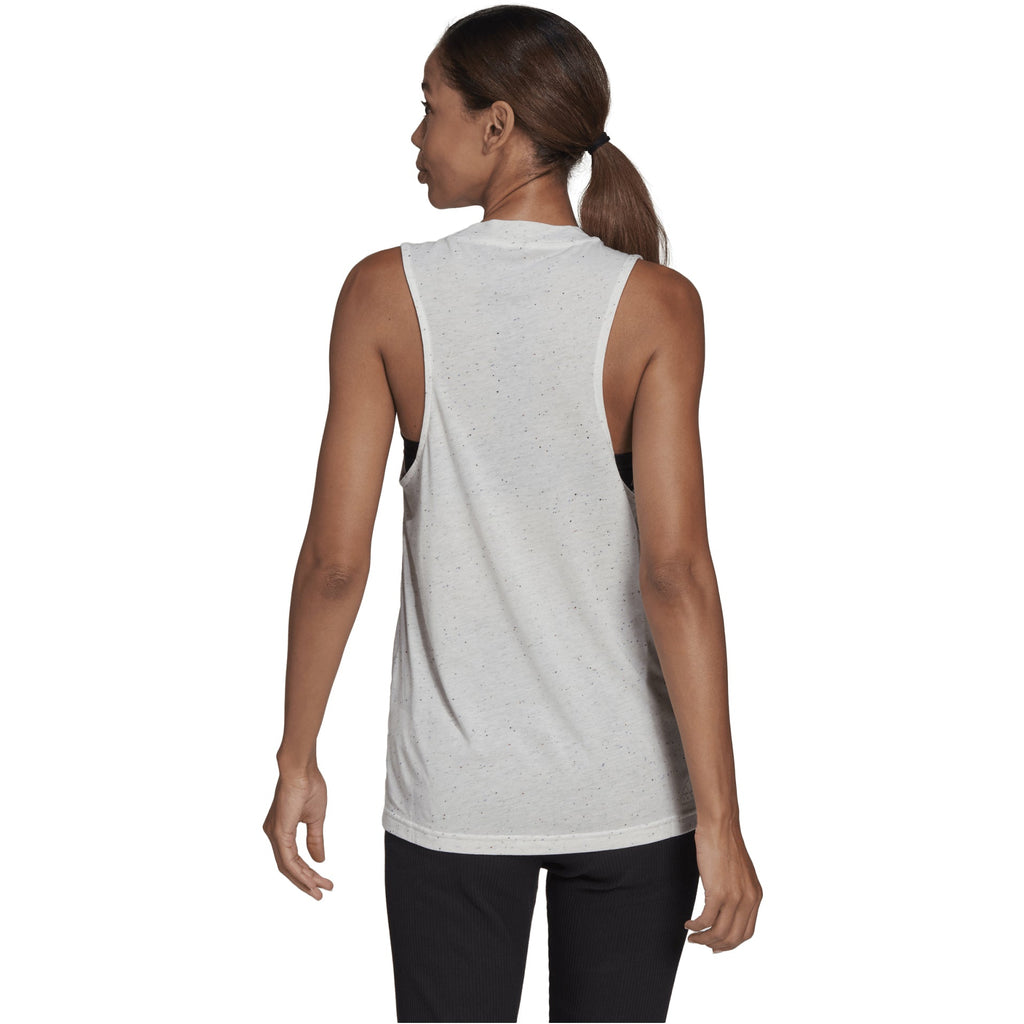 A loose tank top made in part with recycled content. Let it hang loose or tuck it in — the drop-tail hem falls longer in the back to give it that final touch of ease